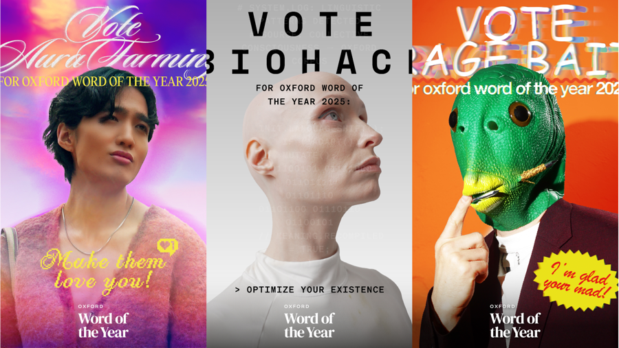 牛津词典今年为三个年度词汇候选词拍摄“拟人”视频。