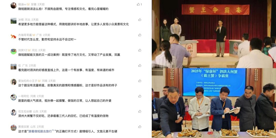 更重要的是,该剧让微短剧成为地域IP的“孵化器”。外婆的蟹塘成为乡村旅游标志性品牌,跨时空姐妹情成为泗洪文旅的情感标签,非遗技艺通过剧集获得更广泛的传承与创新可能。2025年前三季度,泗洪接待游客871.3万人次、旅游收入81.2亿元,同比分别增长8.9%和11.5%,这份数据印证了模式实效。它将内容价值转化为IP价值,再升级为产业价值,让微短剧成为推动地域经济、文化、旅游协同发展的“催化剂”,实现从流量到留量的蜕变。