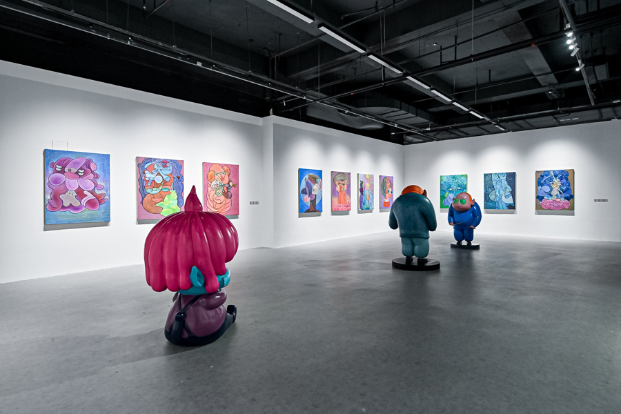 雕塑作品则以多元材质呈现奇趣质感,玻璃钢、铸铜、不锈钢等材质的运用,让精灵、萌物等奇幻形象跃然眼前,既有夸张造型传递的童真趣味,也有金属质感带来的现代审美,与油画作品形成材质与视觉的巧妙对话,丰富了展览的层次与体验。