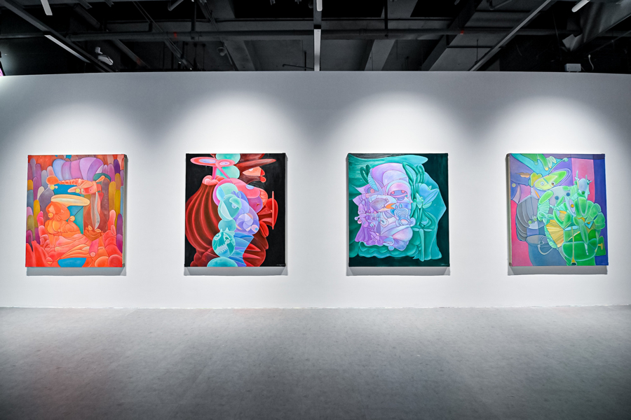 艺术家将梦中光怪陆离的异象转化为画布上交错缠绕的奇幻形态。只见斑驳绚丽的色调下,暗涌着欲望与眷恋、生命繁衍与消亡的深刻命题,粗犷豪放的造型勾勒与纤细婉约的色彩雕琢形成鲜明碰撞,让观者在繁杂喧闹的画面中感受饱满情绪与无限遐想。