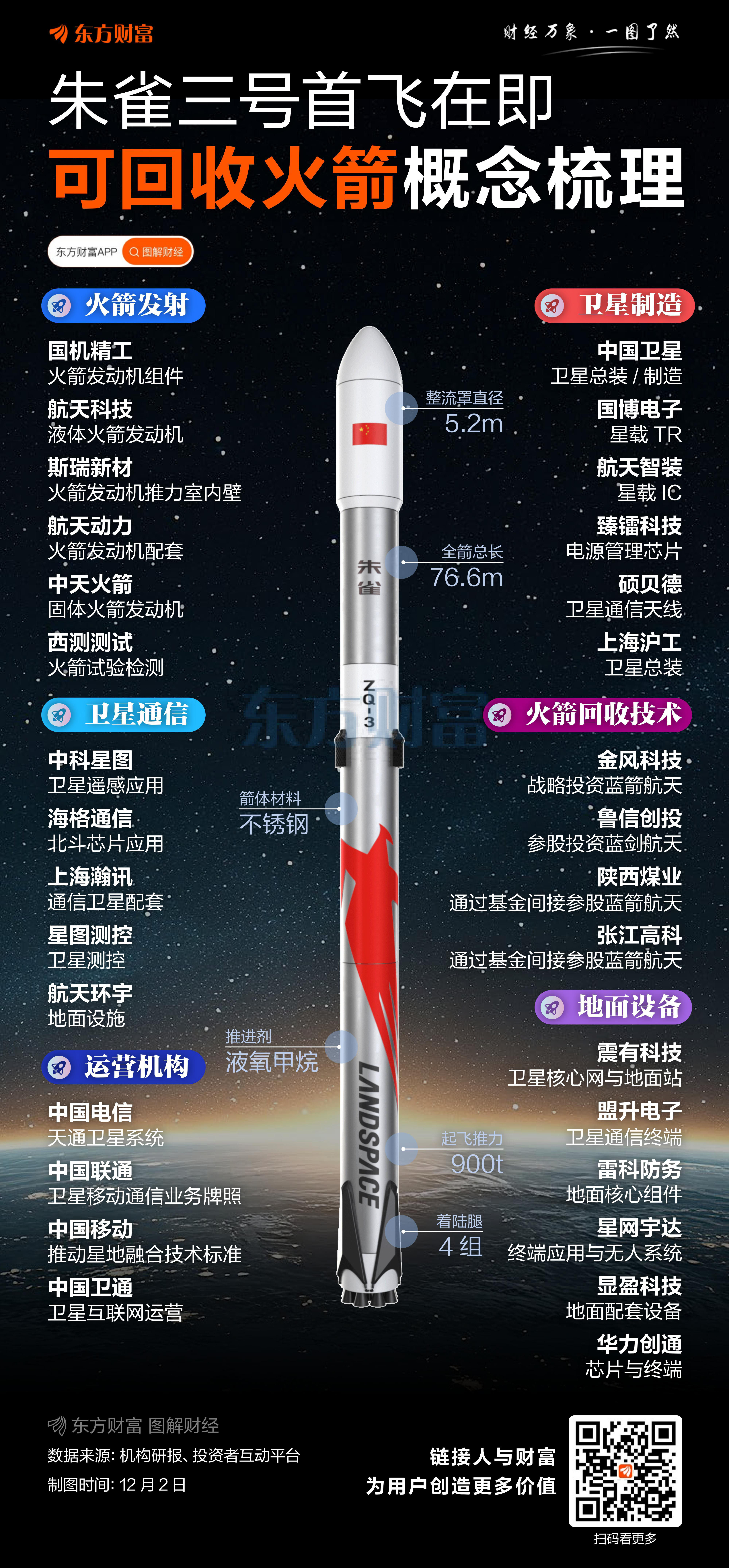 消息面上,朱雀三号首飞时间备受关注。据界面新闻,12月1日就发射时间蓝箭航天回应称:以官方信息为准。蓝箭航天此前并未公开宣布过朱雀三号的首飞时间。