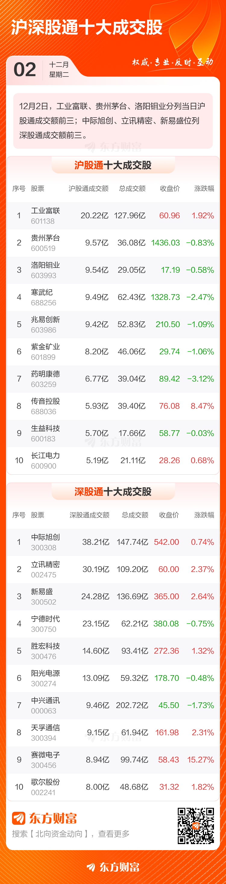 工业富联、贵州茅台、洛阳钼业位列沪股通成交前三铜仁绝缘玻璃棉,成交额分别为20.22亿、9.57亿、9.54亿;中际旭创、立讯精密、新易盛位列深股通成交前三,玻璃棉毡成交额分别为38.21亿、30.19亿、24.28亿。