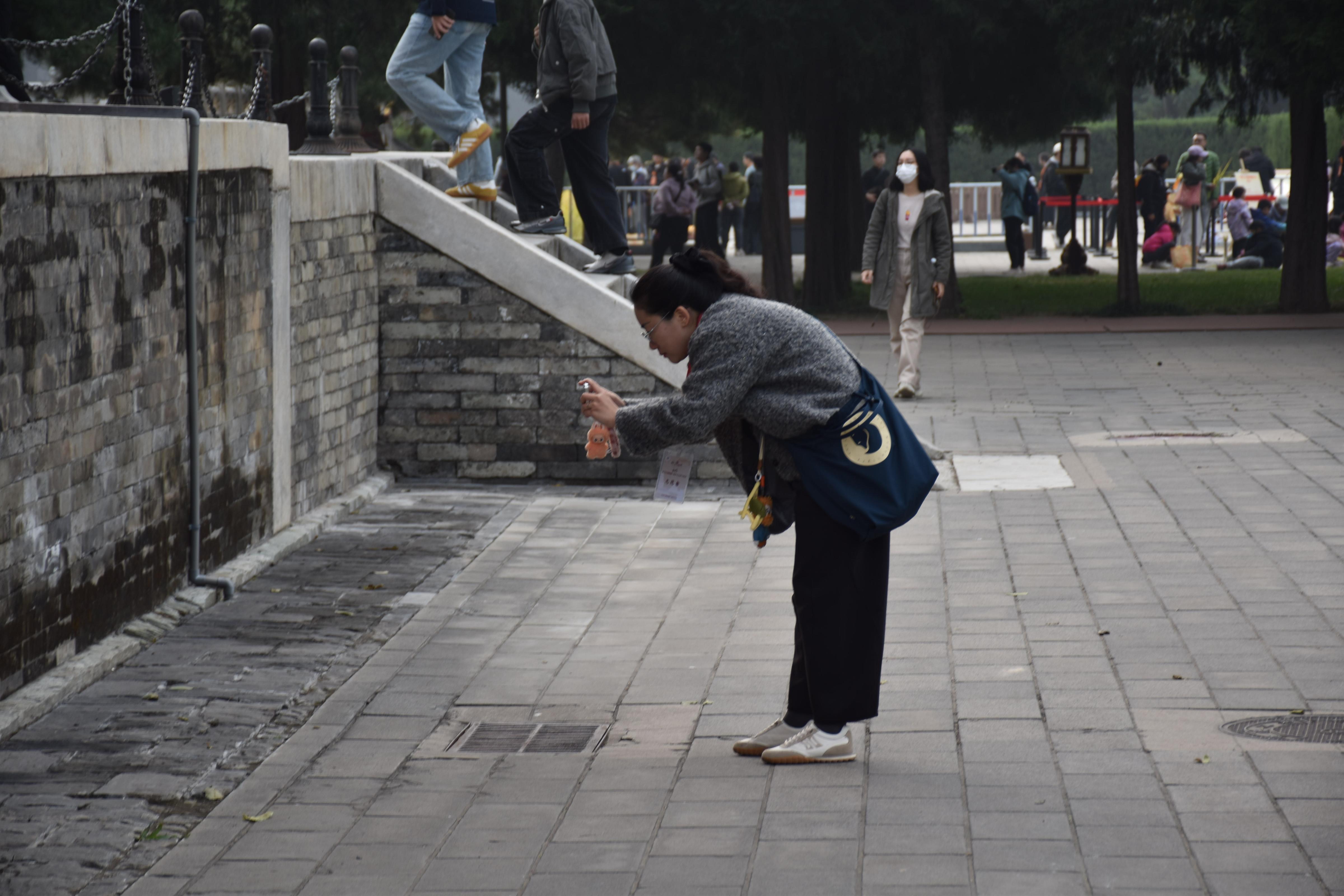 “经常对着地面、砖瓦拍照,也有游客好奇。我就会给他们科普文物保护知识,讲述一砖一瓦、一草一木背后的故事。”陈晶说,行走在先农坛内,她也感受着这里的文化氛围。上个月初,她巡查的时候恰巧赶上“一亩三分地”迎秋收。“站在耤田边,我看见一家三口走在金色的稻浪中,觉得特别感动,好像古今场景在这里交汇了。”陈晶也给他们拍了一张照,她说,这样的瞬间让自己感受到中轴线是“活”着的,而且特别有生命力。