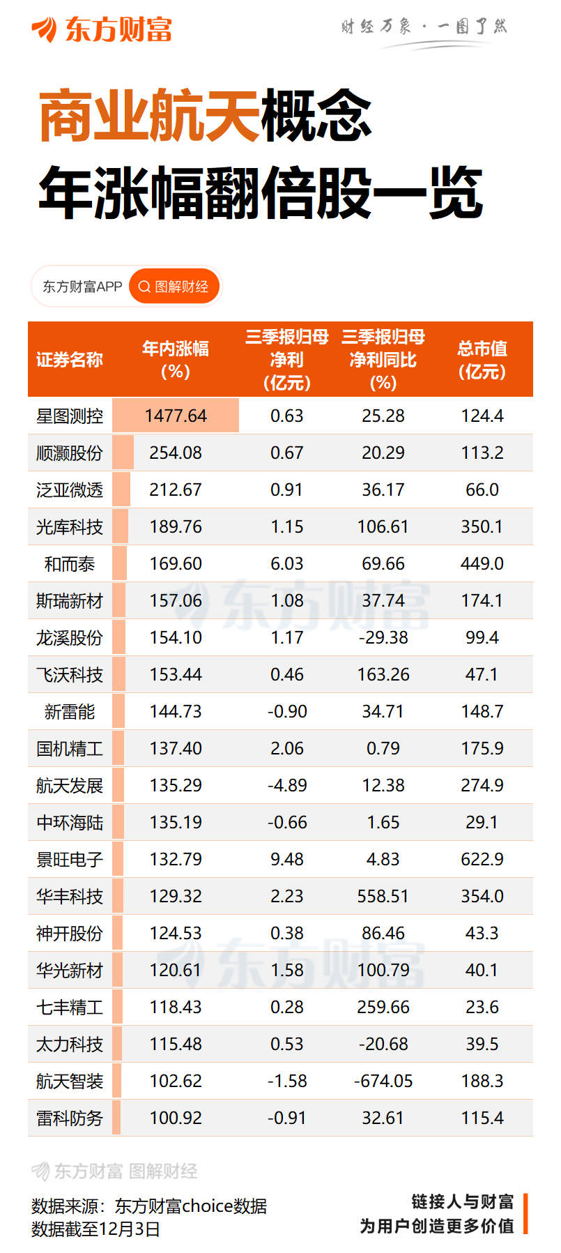 数据显示,“商业航天”是近期一个反复活跃的概念,大概自11月21日起震荡走强,板块最大区间涨幅接近9%,也涌现了不少短线大涨的牛股。