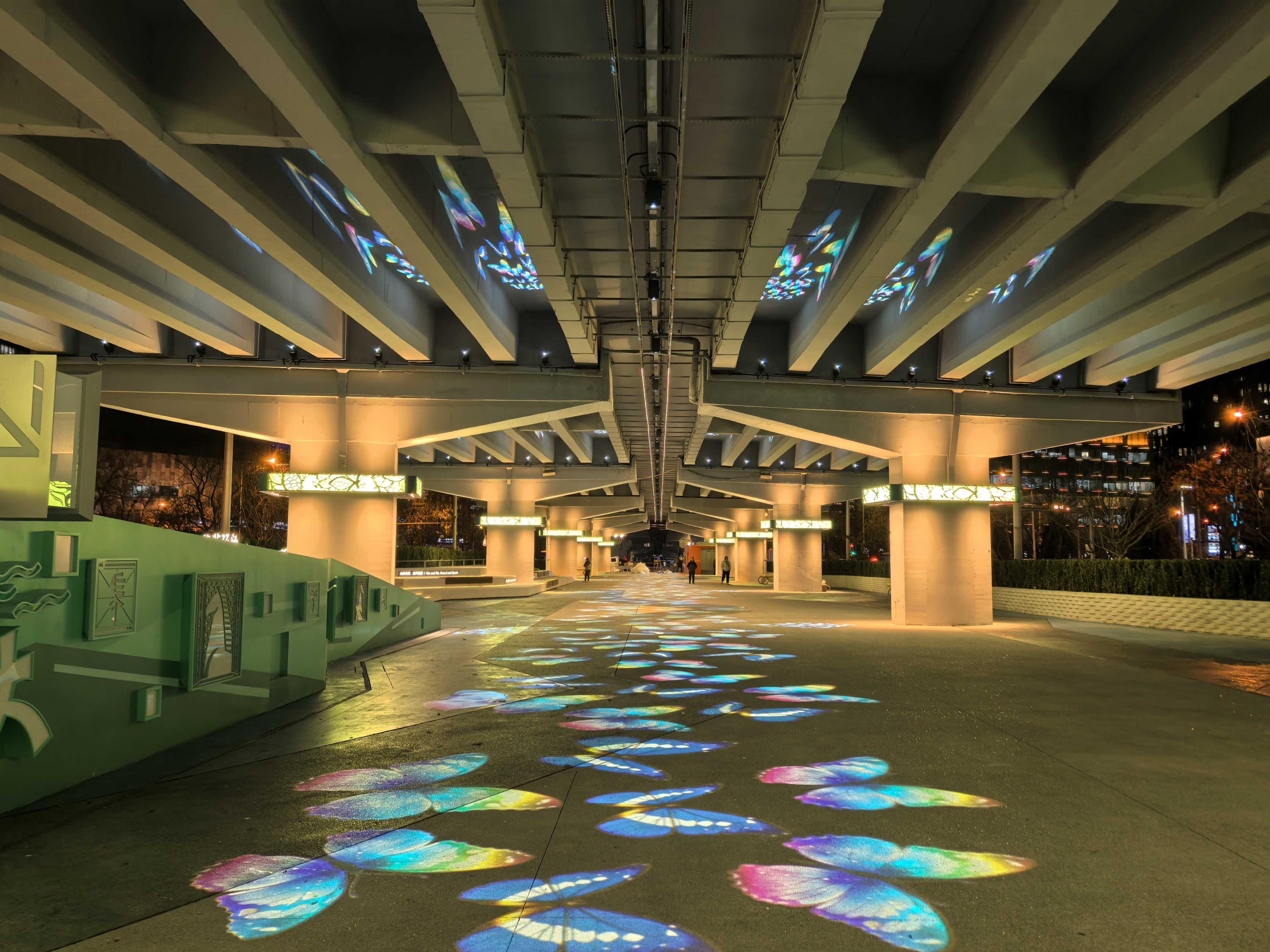 人们常把桥下的闲置地方称为“灰色空间”,不仅杂乱,而且功能单一,甚至存在一定安全隐患。此次工程旨在打通滨水脉络、串联水岸景致,让燕莎桥下空间与亮马河的景致相融。