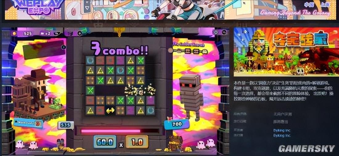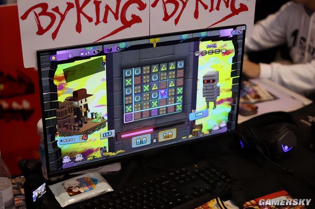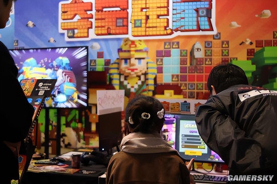 其中,一款名为《夺宝砖家》的像素消除“小游戏”便引起了许多玩家的兴趣。虽说展位面积不大,只是进行了简单的布置,但还是让许多玩家停下了匆匆的脚步,忍不住排队试玩。