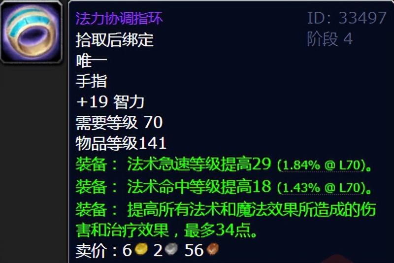 今日份最后的席位比较难选,但是考虑到配装容错率天花板这个角度的话,喵叔果断抬上了法力协调指环给大家掌掌眼,特别是术士这个职业,如果专业是裁缝珠宝的话,选择法力协调指环凑命中嘎嘎好使,这枚戒指和熔铸指环可谓是卧龙凤雏,当高端大佬身披阳炎,穿戴灾难护腿之时,就会发现他们这绿字命中的香甜了。那么最后的灵魂拷问给到各位大兄弟,你觉得祖阿曼最极品的装备又是哪一款呢?我们评论区见!