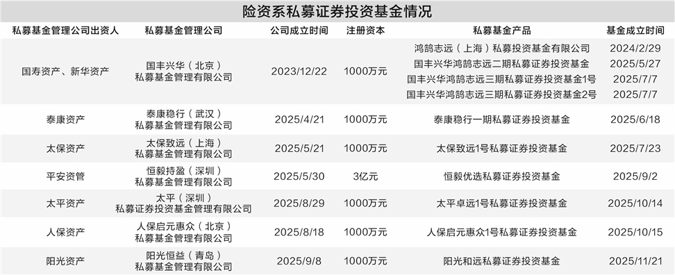 证券时报记者注意到,迄今已有7家保险系私募基金管理公司成立,共发起设立私募证券投资基金已达10只,并均进入了运作阶段,包括鸿鹄基金系列一期、二期、三期1号、三期2号,泰康稳行一期基金,太保致远1号基金,恒毅优选基金,太平卓远1号基金,人保启元惠众1号基金,阳光和远基金。