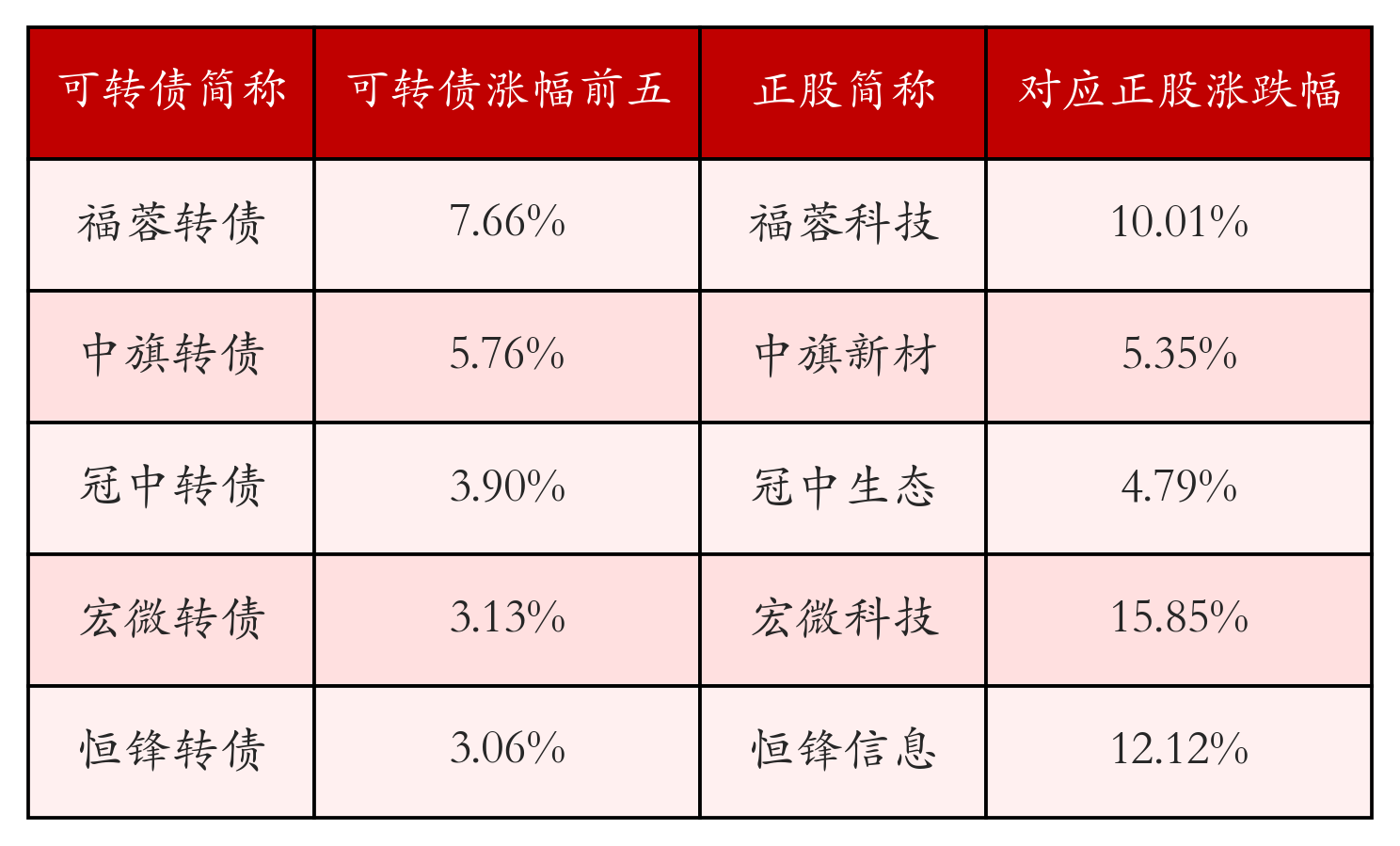 南财智讯12月2日电,南财金融终端盘后数据显示,债市方面,中证转债指数收跌0.52%,报479.58,成交额为443.71亿元。可转债方面,今日共成交395只可转债,其中56只收涨,1只收平,338只收跌。具体来看,7只可转债涨幅超过2%。其中福蓉转债(113672)涨7.66%,中旗转债(127081)涨5.76%,超细玻璃棉板冠中转债(123207)涨3.9%。今日有34只可转债跌幅超2%阜新高温玻璃棉,博俊转债(123222)跌5.54%,东时转债(113575)跌5.41%,大中转债(127070)跌4.87%。存在交易量的可转债所对应的正股中,101只收涨,17只收平,277只收跌。具体来看,9只可转债对应正股涨幅超过5%,其中,恒逸石化(000703)涨停,收涨10.05%。同时所对应的可转债:恒逸转债(127022)同涨3.05%。今日有1只可转债对应正股跌幅超过5%,没有正股跌停。