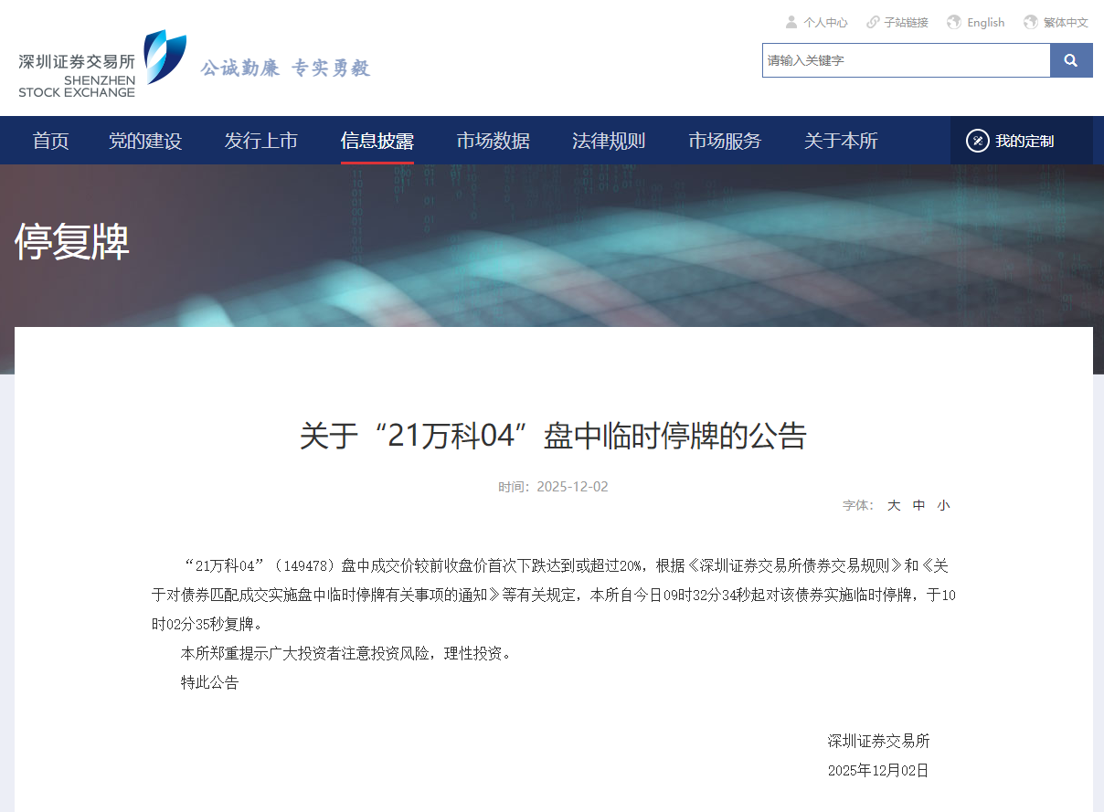 上证报中国证券网讯据深交所2日消息,“21万科04”(149478)盘中成交价较前收盘价首次下跌达到或超过20%,根据《深圳证券交易所债券交易规则》和《关于对债券匹配成交实施盘中临时停牌有关事项的通知》等有关规定韶关玻璃纤维棉 ,超细玻璃棉板深交所自今日09时32分34秒起对该债券实施临时停牌,于10时02分35秒复牌。