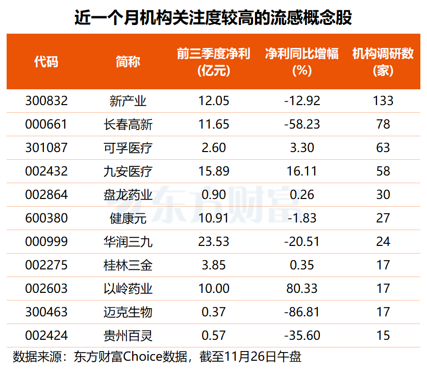 今日早盘,流感概念股再度活跃,粤万年青上封20cm涨停,广济药业3连板,北大医药、海南海药亦封板,新华制药、华兰疫苗、康芝药业、特一药业等集体大涨。