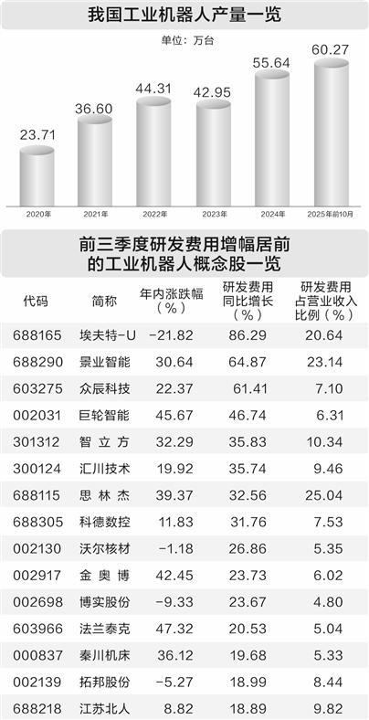 近年来,全国工业机器人市场持续火热。根据国家统计局数据,今年1—10月我国工业机器人产量达到60.27万台,同比增长28.8%,已超过2024年全年,产量创出新高。