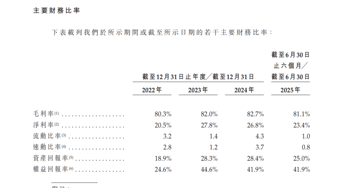 同期,蔓迪国际毛利率分别为80.3%、82.0%、82.7%、81.1%,净利率分别为20.5%、27.8%、26.8%及23.4%。