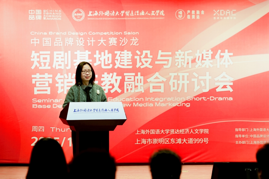 本次研讨会由上海外国语大学贤达经济人文学院与中国品牌设计大赛组委会联合主办、艺术与传媒学院承办,以多元交流呈现短剧与新媒体营销的新趋势,分享了产教融合的前沿实践。与会嘉宾认为,会议搭建了高效对话平台,为推动短剧与新媒体领域的产教融合提供了新思路与新机制。
