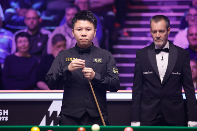 周跃龙在比赛中。世界斯诺克巡回赛供图