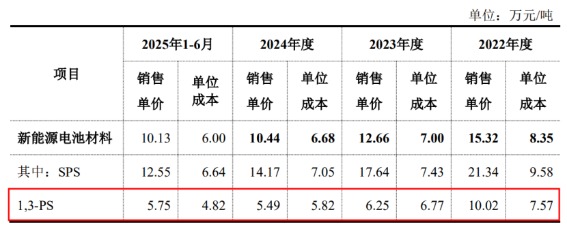 其中,锂电池电解液添加剂1,3-PS在2022年均价为10.02万元/吨,2024年跌至5.49万元/吨,降幅45%;2025年上半年虽小幅回升至5.75万元/吨,但行业产能依旧过剩,价格反弹空间有限。