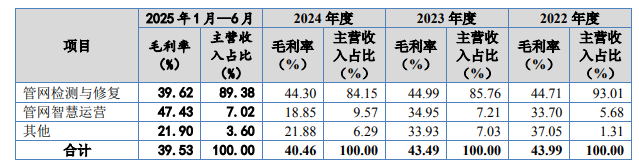 记者注意到,注册稿重点提示了收入确认主要依赖内部控制执行情况的风险。公司营业收入由管网检测与修复、管网智慧运营和其他业务构成,其中管网检测与修复业务包括检测与修复工程、修复材料销售和工程技术服务。