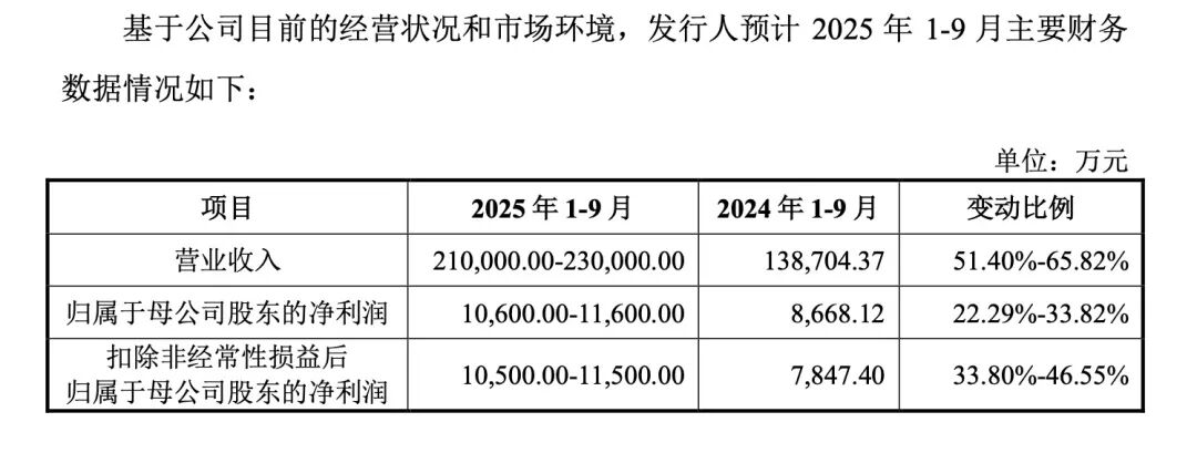 丰倍生物招股书称,预计公司2025年前三季度实现净利润1.06亿元至1.16亿元,同比增长22.29%至33.82%。