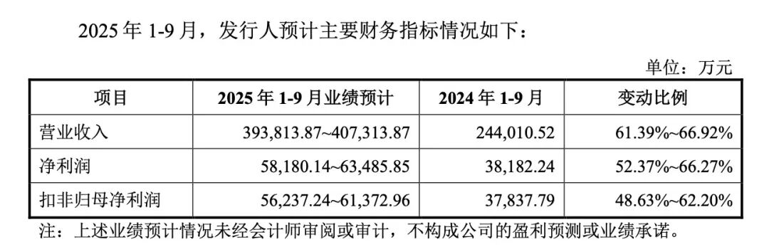 德力佳招股书称,预计公司2025年前三季度实现净利润5.82亿元至6.35亿元,同比增长52.37%至66.27%。