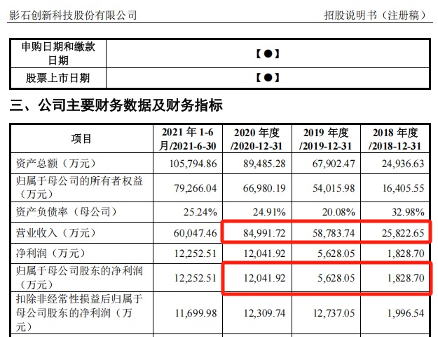 2018年至2020年,影石创新的营业收入分别为2.58亿元、5.88亿元、8.50亿元;归母净利润分别为1828.70万元、5628.05万元、1.20亿元;毛利率分别为51.71%、54.10%和46.59%。
