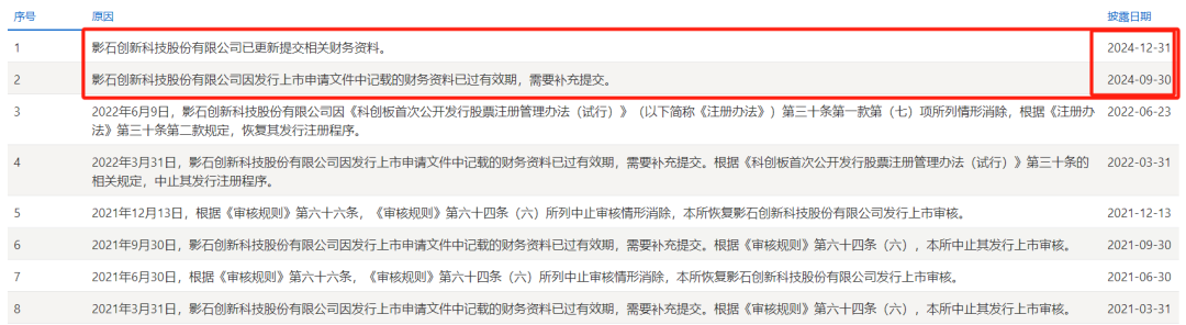 上海证券交易所官网显示,2024年9月30日,影石创新因发行上市申请文件中记载的财务资料已过有效期,需要补充提交。
