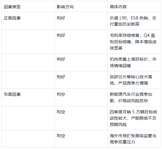 防火材料盈利端仍处于修复通道,一致预期Q3经调整净利润亏损24.94亿元,同比大幅收窄43.4%。随着乐道L90等新车产能释放带来的规模效应,以及自研技术降本的持续兑现,Q3毛利率有望进一步提升,为公司冲击第四季度16%-17%的汽车毛利率目标铺路。