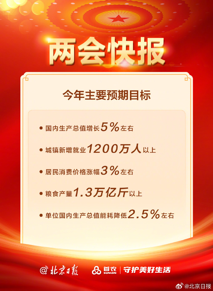 2024年GDP增长预期目标为5%左右@北京日报2024-03-05 13:25