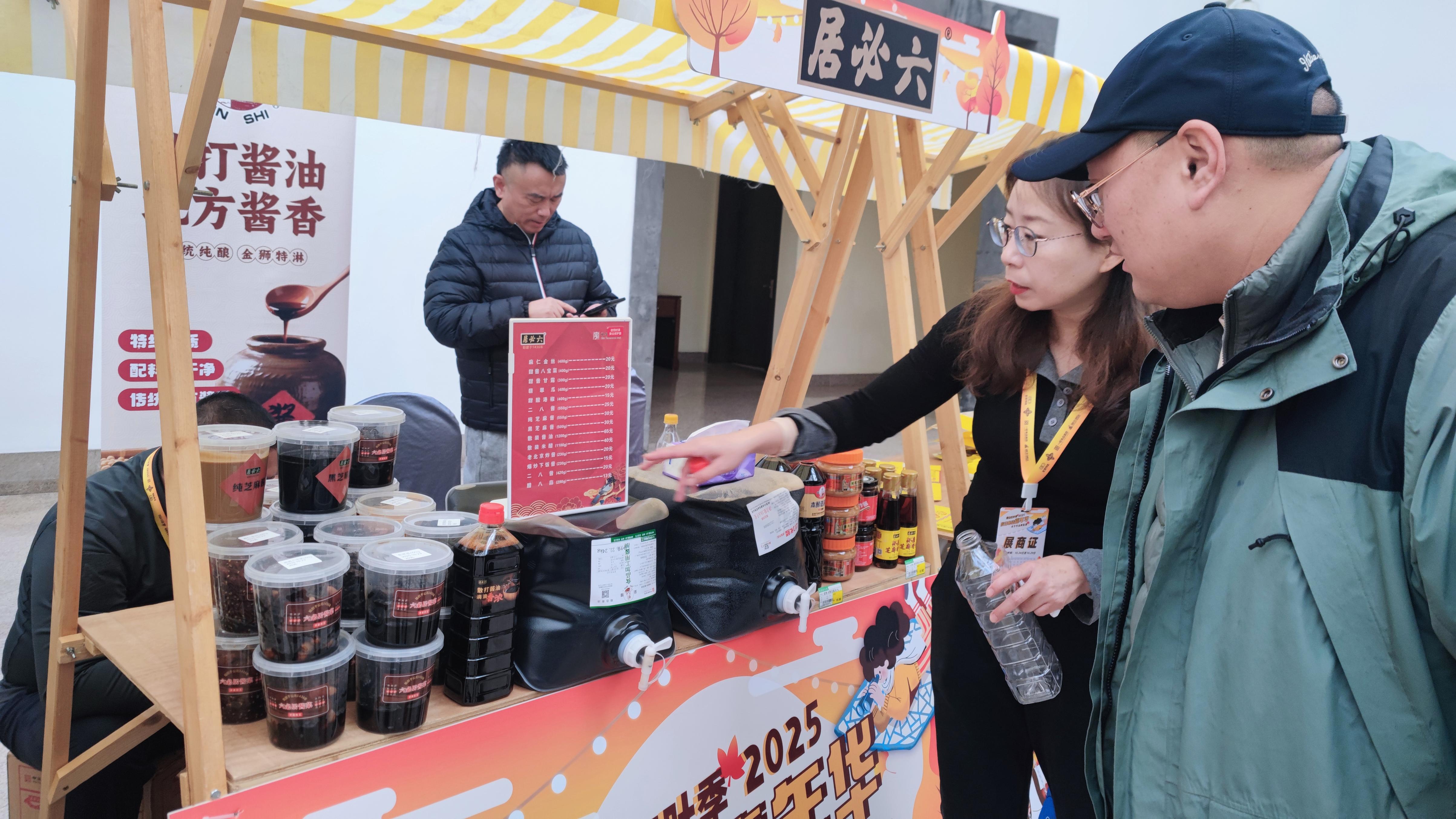 “传统纯酿,配料表干净。您闻闻,这酱香味!”六必居展台传来阵阵吆喝声。除各类酱菜,这次市集老字号展出散打酱油、散打醋,传统特色让人耳目一新,吸引不少消费者围观。