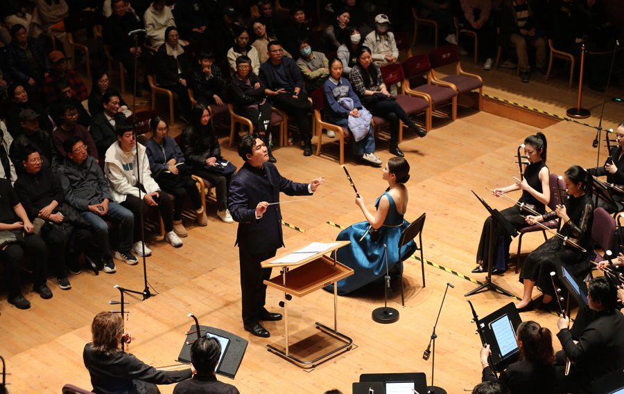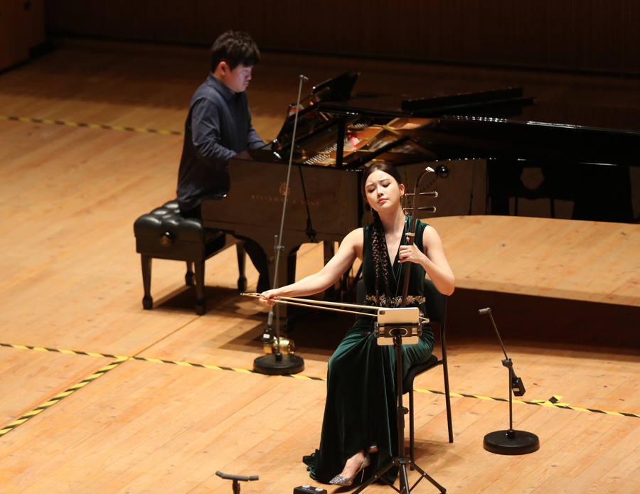 关乃忠《第一二胡协奏曲》第一乐章由陆轶文与钢琴家李渊清携手诠释,展现了中国青年怀揣理想的精神内核。青年作曲家李渊清为本次音乐会量身创作的致敬之作《芬芳》迎来世界首演,作品以“芬”字呼应闵惠芬大师之名,用诗意旋律礼赞其艺术精神与人格魅力。