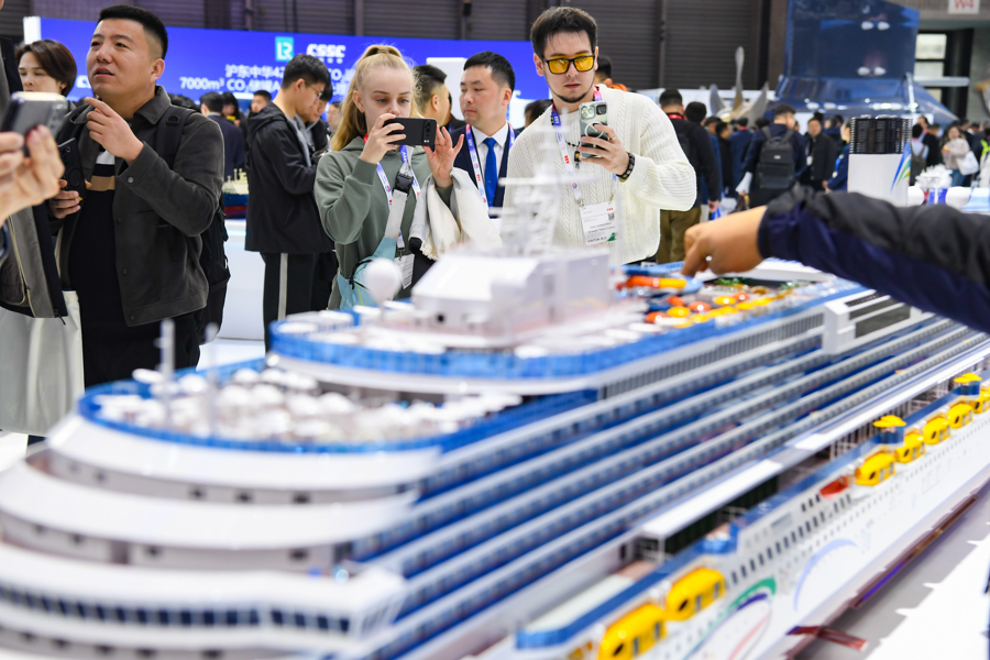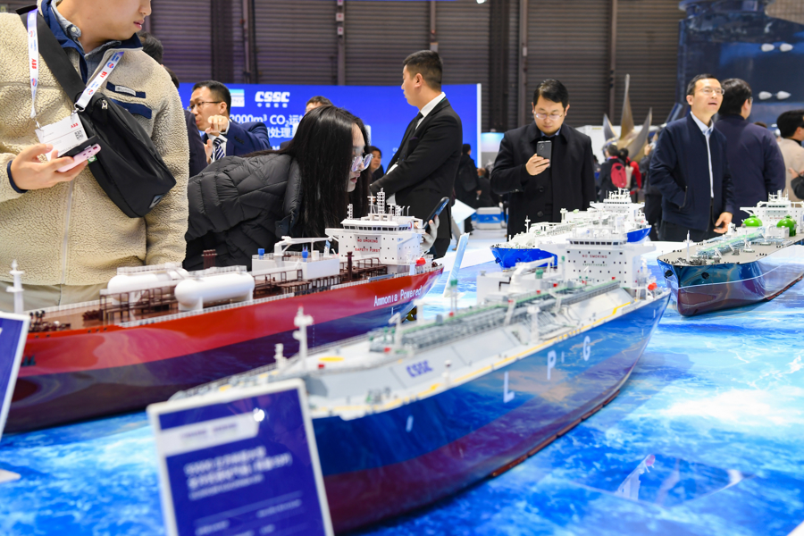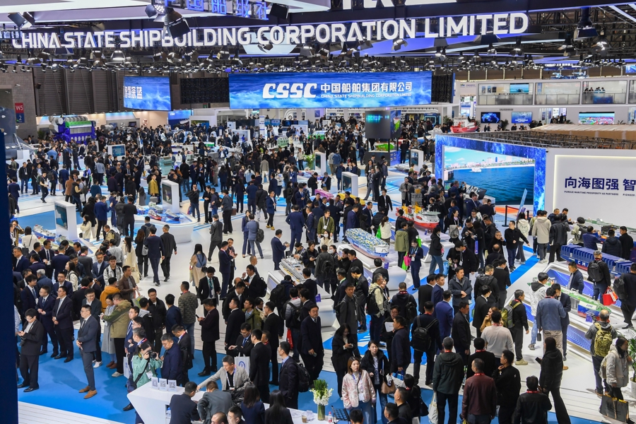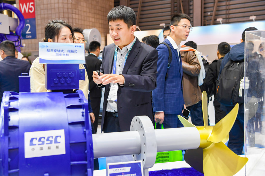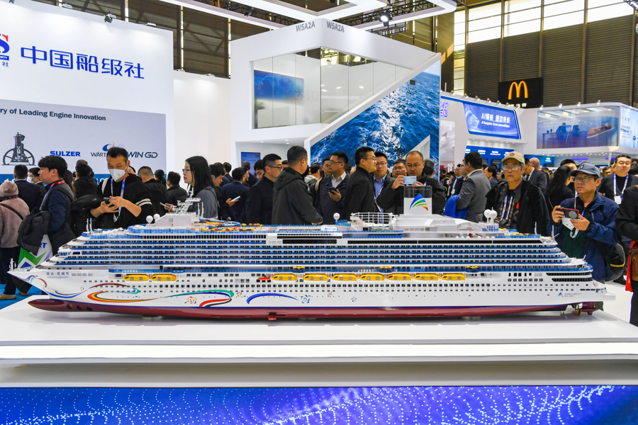 本次会展上,中船集团展台面积达4000平方米,以“向海图强 智领深蓝”为主题,聚焦“高端、绿色、智能、深海、极地、生态”主线,分设高端产品、绿色能源、智能技术、深海开发、极地探索、生态融合等六大展区,集中展示中船集团品牌形象,呈现高端产品、卓越技术和生态服务。
