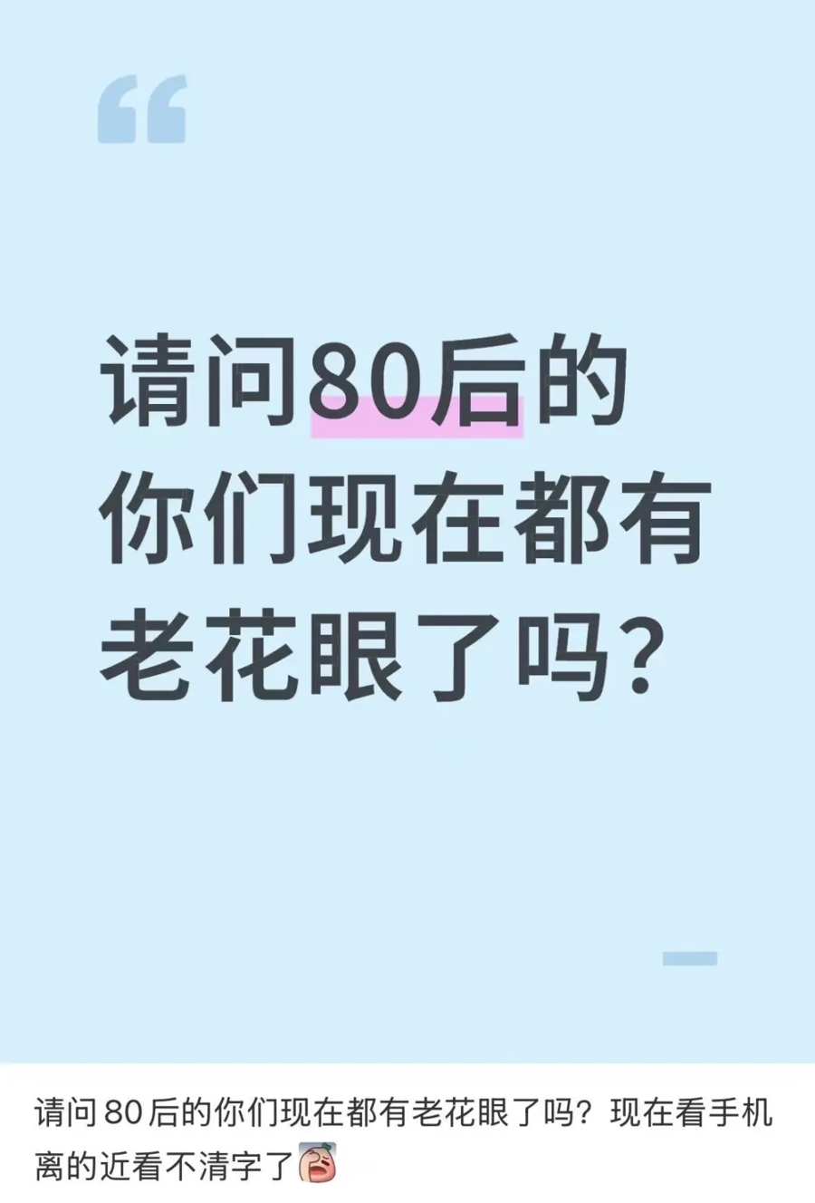 你有没有手机玩着玩着突然眼前一糊,对不上焦的情况?曾以为老花眼是爷爷奶奶辈的专属标签,这时间啊一眨眼,居然已经轮到80后了。