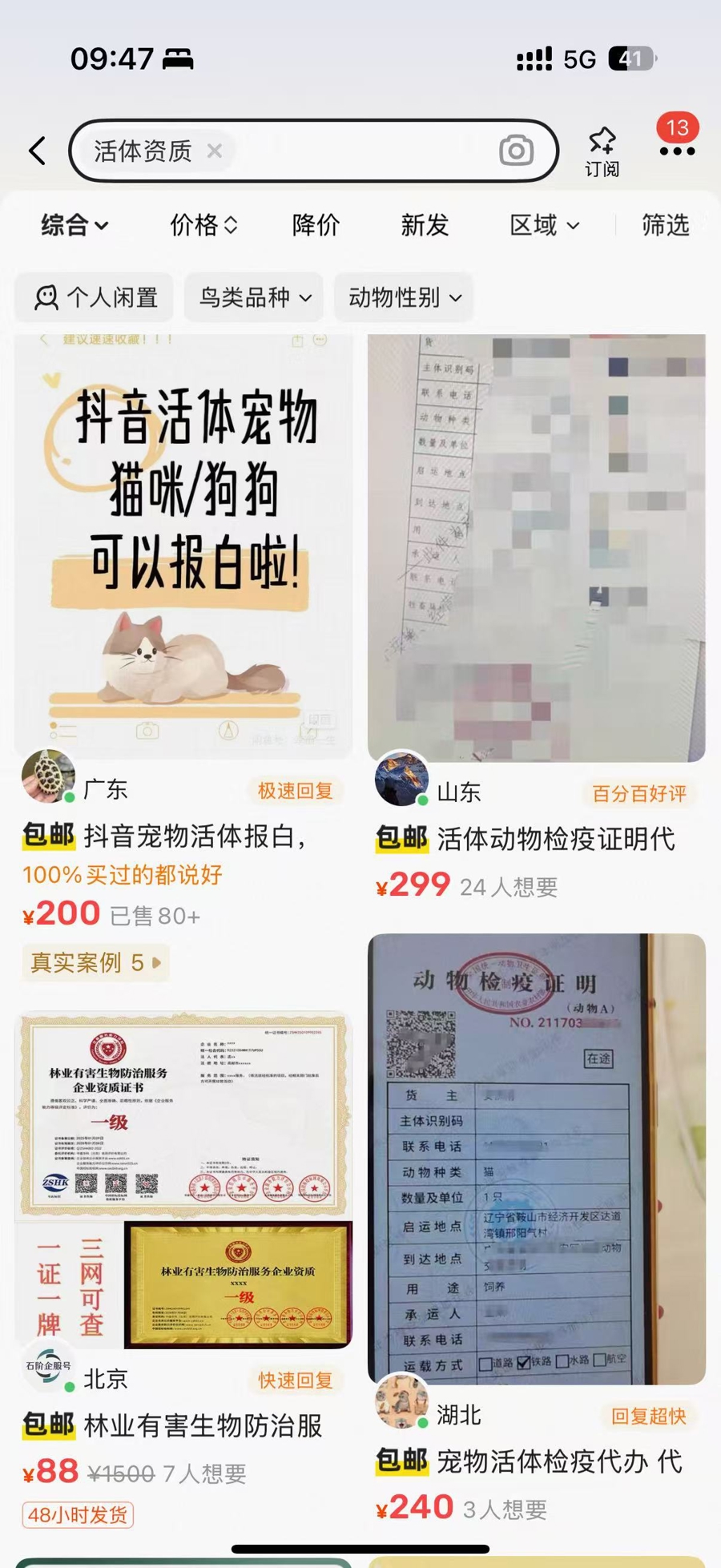 在赵占领看来,一次性检疫证明并非长期有效的通行证,检疫证明的核心功能是证明单次运输动物的健康状态,具有一事一议的属性,当前的做法显然不符合法规要求。商家利用一次性证明反复邮寄活体的行为,也与快递企业规避监管有关,合法运输活体动物应通过专门的物流渠道,并严格按《动物防疫法》的要求,在每次托运时提供对应的检疫证明。