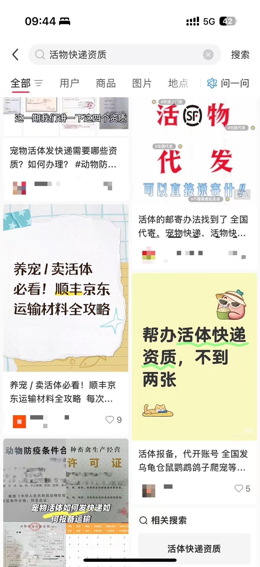 问题不止于此,在社交媒体平台,有多名金丝熊、鹦鹉商家发帖咨询“如何谈快递价格”,表示检疫等证明无法办理,导致不能自行邮寄,需寻找批量代发。“代发代办宠物快递资质”成了一种新生意,有人持各种检疫证明样证图片宣称提供“代办”服务,另有不少有资质的商家通过“快递代下单”服务赚差价。