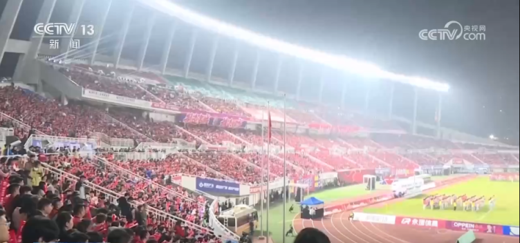 这里是湖南株洲的体育中心,现在这里正在进行株洲主场对战长沙客场的“湘超”比赛。记者也在场外观察到,“湘超”给当地带来的热度不仅仅是体育竞技本身,在场外的特色市集里有很多当地特色的餐饮店和文创店都排起了长队。从初步了解到的数据来看,本场比赛在场内的观看人数再一次突破了4万多人,更多的观众选择在各个特色的市集、餐饮店和酒店进行第二现场观赛。“湘超”在湖南不仅仅是体育竞技之间的一次次交手,更是湖南14个市州之间、体育与文旅之间的一次次携手。