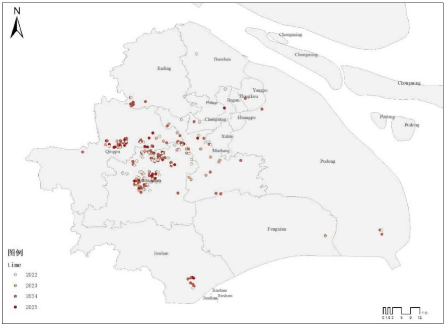 调查发现,貉在上海的分布区域持续扩大。松江、青浦两区仍是其核心分布区域,两区的平均貉密度和平均貉遇见率均为最高。然而,今年普陀区首次记录到了貉的分布点,表明貉在上海的扩散与迁移仍在持续。