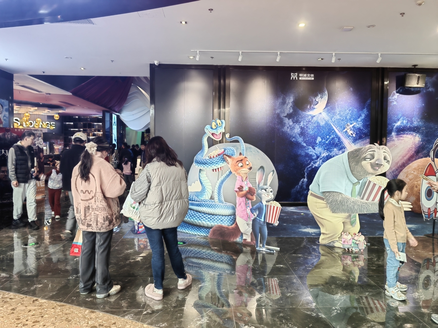 上海一家影院的《疯狂动物城2》打卡布置 钟菡 摄