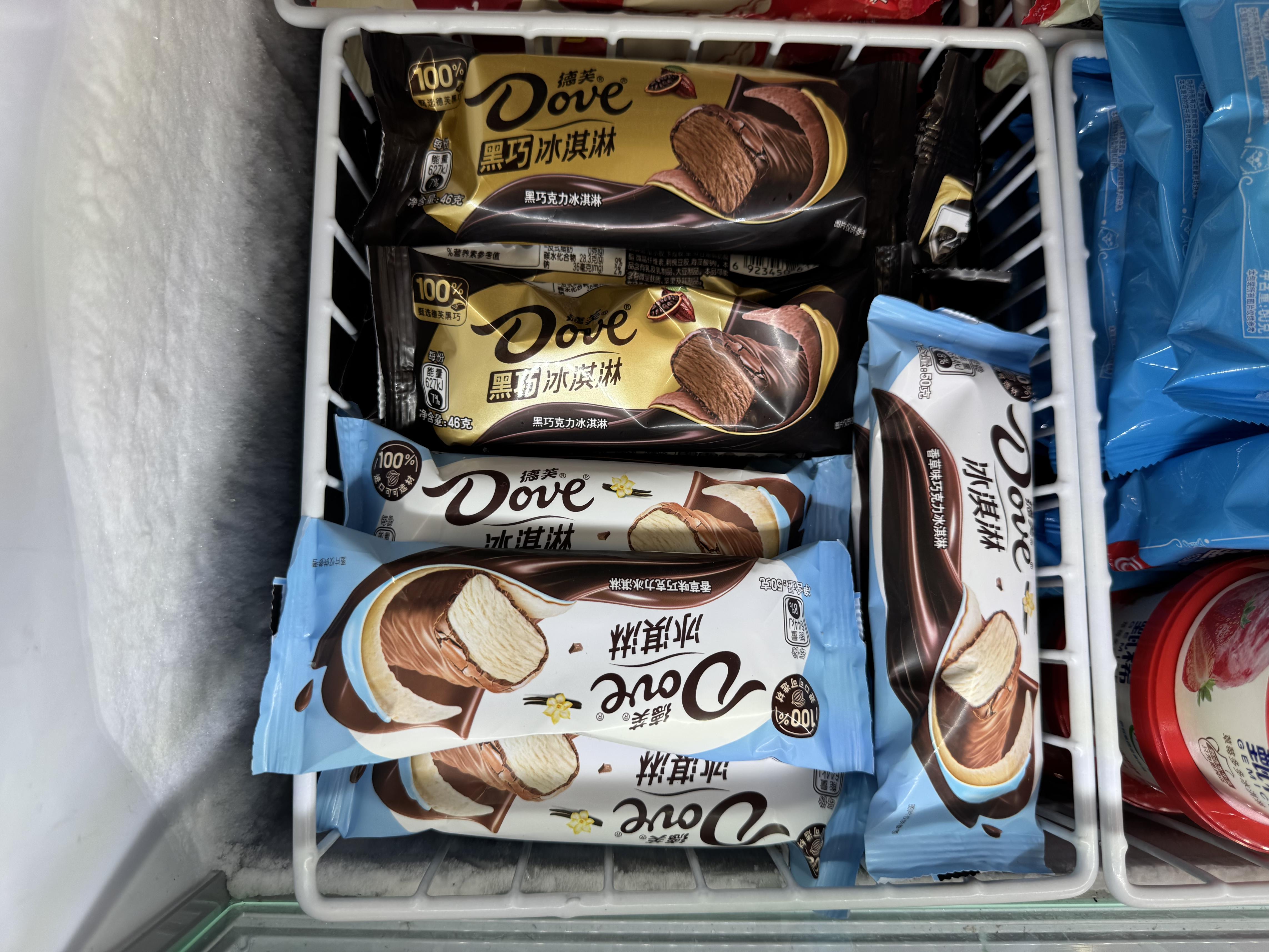 除了洽洽食品,在盒马超市、罗森便利店等店铺内,记者还看到了Costa咖啡冰淇淋、德芙黑巧克力冰淇淋、雀巢脆脆鲨冰淇淋等不少跨界产品。