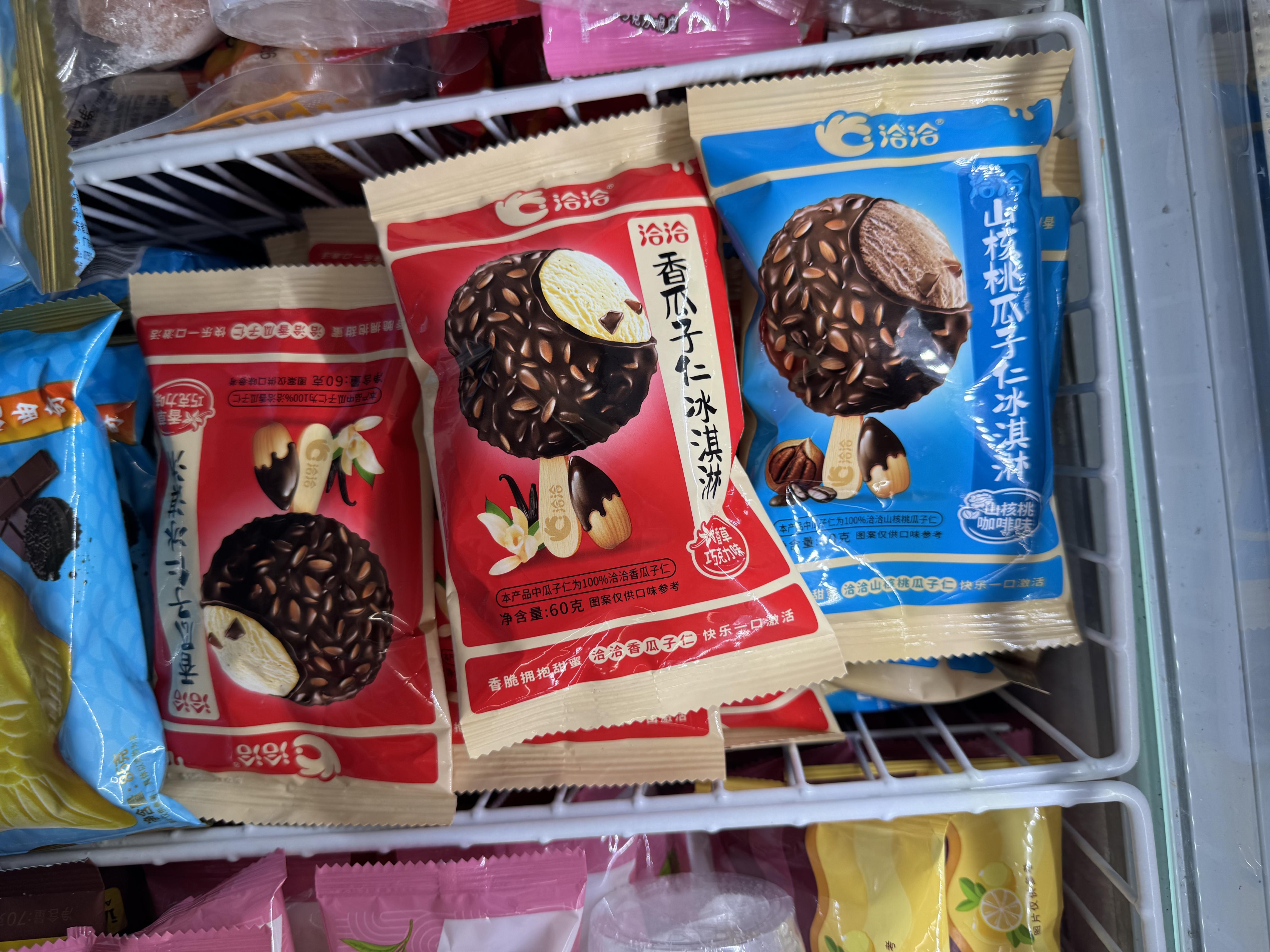 走进7-11便利店崇外大街花市店,几款洽洽瓜子仁冰淇淋正摆放在冰柜最上方,和瓜子一样的经典配色包装袋,吸引了不少顾客的目光。“乍一看,还以为是谁把瓜子放在冰柜里了!都不知道什么时候洽洽瓜子也出冰淇淋了,真的非常新鲜有趣,价格也不贵,买回家尝尝。”市民吕先生驻足在冷饮柜前良久,将每种口味的瓜子仁冰淇淋各买了一个。便利店店员也表示,瓜子仁冰淇淋刚刚上市不到一个月,销量特别好。