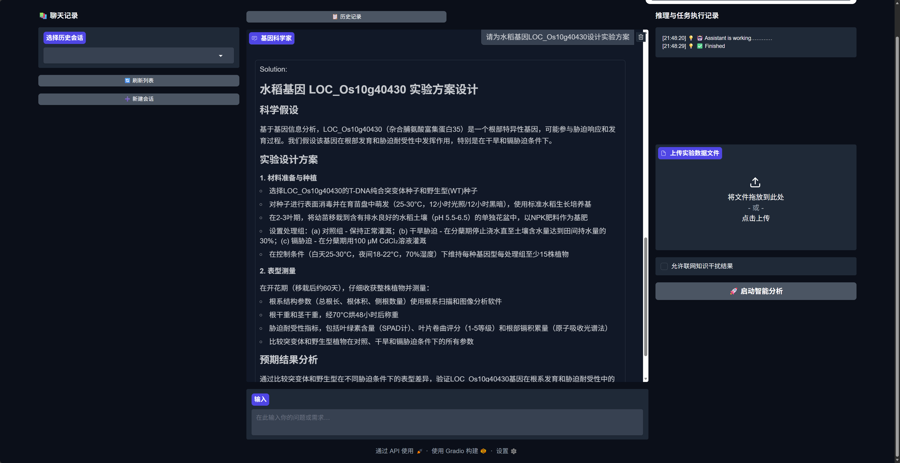 “丰登·基因科学家”不仅能精准回答育种领域问题,更能模拟育种专家的思维链条:提出科学假设、自主设计实验、解析结果数据。截至目前,已辅助科研人员发现数十个此前未被报道的作物基因功能,并获得实验证实。