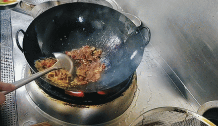 新鲜宜宾黑猪肝,红亮诱人。大火爆炒后,既留猪肝本味,又添川味鲜香,鲜嫩爽滑。浓郁烟火气中,这一口直击味蕾的惊喜,令人难忘。