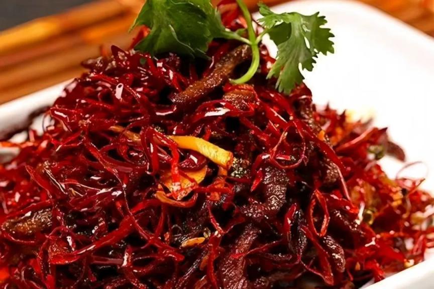 精选宜宾牧场鲜嫩牛肉,切成均匀细丝。热油煸炒间,牛肉在锅中“跳跃”,水分渐失,香气四溢。辣椒与牛肉完美碰撞,酱红色泽诱人,干香劲道,超细玻璃棉板麻辣回甘,一场热辣摇滚在舌尖绽放,下酒下饭超绝!