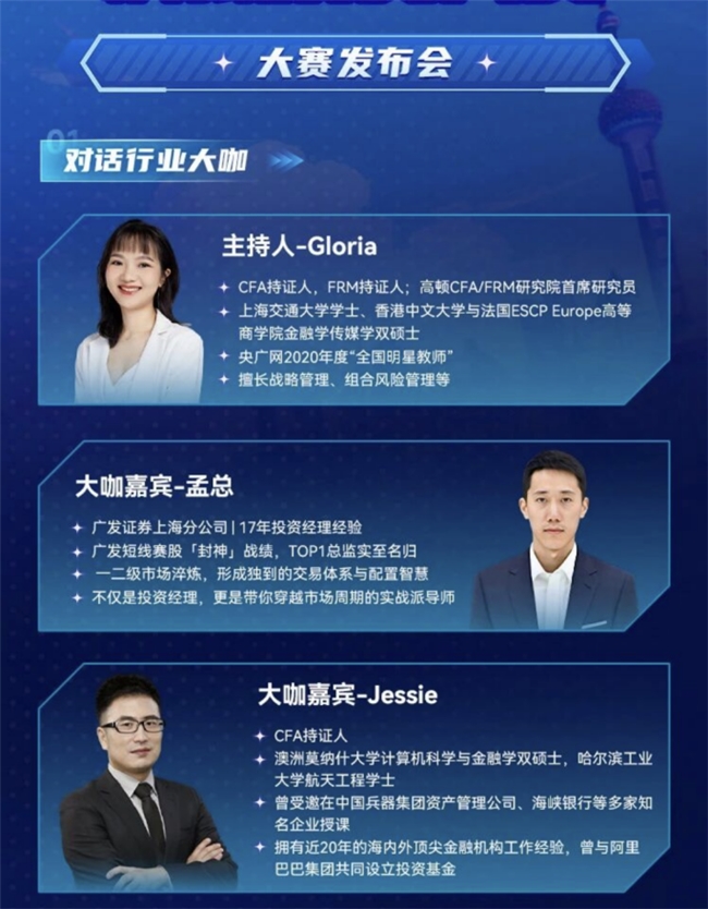 大赛采用三段式进阶赛制,设置多元化赋能体系。初赛阶段(12月1日-12月12日)各赛区前10%选手晋级;复赛阶段(12月15日-12月19日)全国晋级选手同台竞技;决赛阶段(12月27日)以投资策略路演决出全国十强。