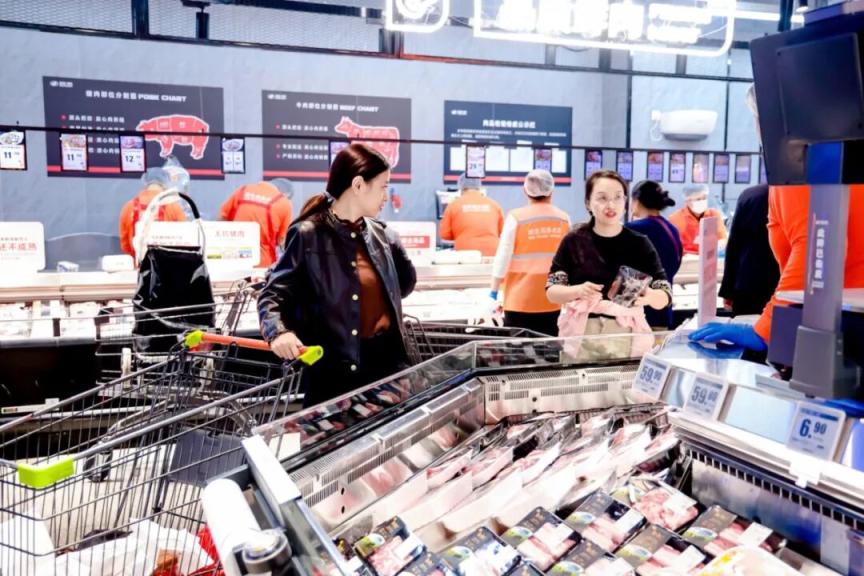 记者现场看到,熟食和烘焙区的多个明厨档口前人头攒动,熟食区现烤的北京烤鸭滴着油汁,肉蛋堡、香河肉饼、卤猪蹄等多款暖身菜品,核桃满满面包和蔓越莓吐司等特色现制烘焙提供免费试吃,吸引大批居民品尝选购,为门店周边顾客提供“一站式”秋季三餐解决方案。