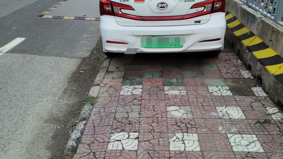 居民们告诉记者,原本宽敞的步行空间大幅“缩水”,剩余的通道仅容单人勉强通过,行人往来已显局促。“总有私家车无视交通规则,径直停在这仅存的狭窄人行道上!”更有甚者,为逃避监管,竟故意取下前后车牌,长期“霸占”人行道,将本就紧张的步行空间完全占去。
