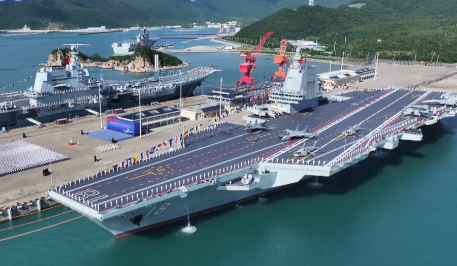 福建舰是我国完全自主设计建造的首艘电磁弹射型航空母舰,电磁弹射技术处于世界先进水平,采用平直通长飞行甲板,配置电磁弹射和阻拦装置,舰载机出动效率更高,大幅提升了海军近海防御和远海护卫作战能力,于11月5日正式入列。