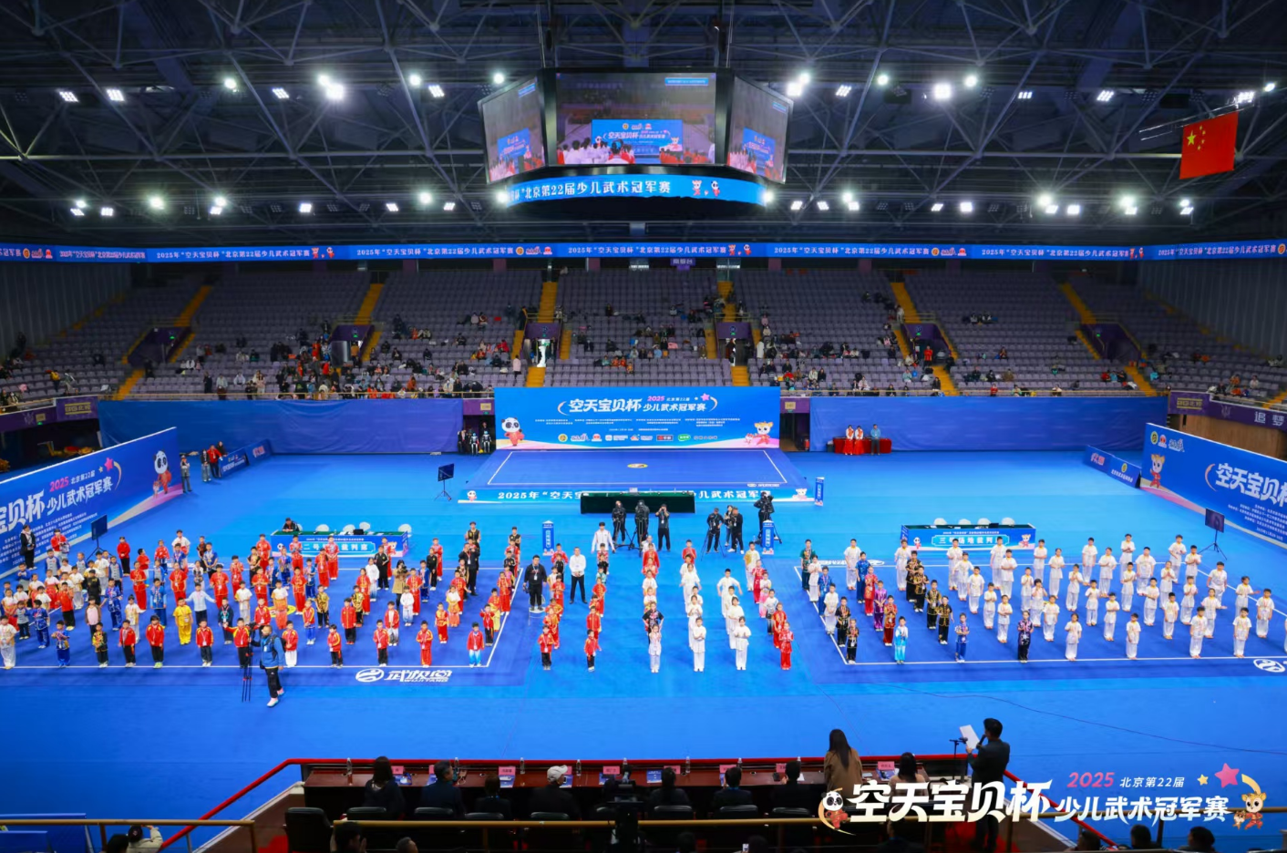 由国民少儿航天 IP「空天宝贝」独家冠名,北京市武术运动协会、北京少儿武术大赛组委会联合主办,中国关心下一代工作委员会健康体育发展中心、北京象美相美文化有限公司提供支持,北京市武术运动协会少儿武术专业委员会协办,北京日月天地体育文化有限公司、北京智合方略公关策划有限公司承办的 2025 “空天宝贝杯” 北京第 22 届少儿武术冠军赛,于 11 月 29 日至 30 日在国家奥林匹克体育中心体育馆热血开赛。千余名少儿武者齐聚赛场,以拳为媒、以武会友,在两天的激烈角逐中展现中华武术的少年风采。