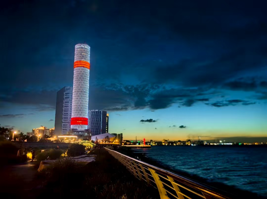 简介:“定海神针”观光塔北濒长江入海口,南望黄浦江,远眺东海,原本是G1503过江隧道设置的功能性排风烟囱——若它仅停留于本体意义,它或许会成为岸线上突兀的工业符号,甚至因庞大的体量成为视觉负担。设计的介入完成了对功能的重构和升华,借鉴西游记中“定海神针”的理念,将其从水中移至陆地,矗立在长江的入海口处,仿佛从水中升起的、守护东海的新坐标。今年5月,“定海神针”观光塔开放试运营。位于15至18层、最先开业的一尺花园迅速走红,凭借高空景观优势和品牌积累,成为上海一尺花园日均营业额最高的门店,并持续“霸榜”点评网站“上海咖啡厅热门榜”前三名。有了好的开始,观光塔持续发力,又在7月中旬开出“乐营探索乐园”,乐园涵盖凌云步道、云霄秋千、云端织梦、通天矩阵、极速跃界五大主题游玩项目,吸引了一批不满足于室内观光的勇敢者。