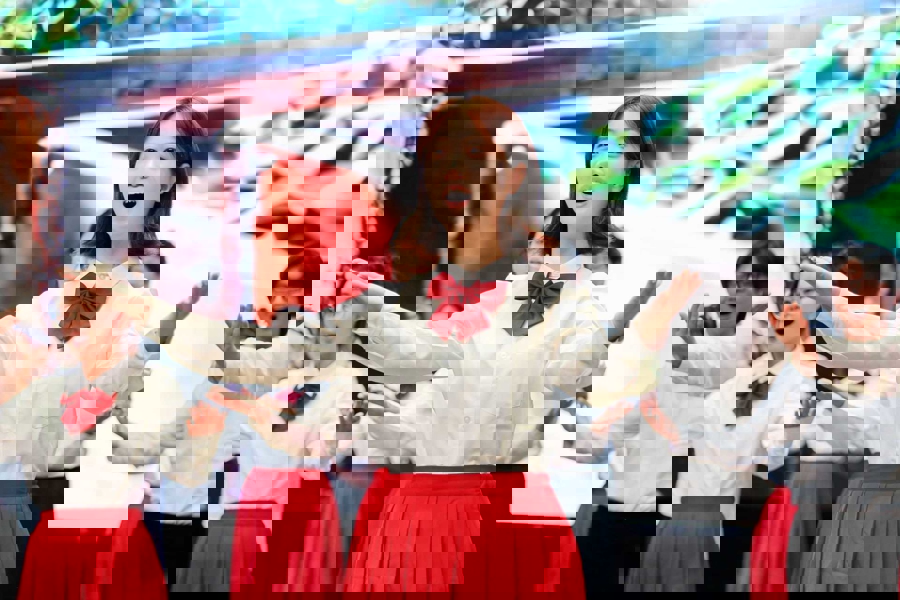 一支原创主题歌曲《赋美·家园》深情唱响,“老匠人刻木生花,无人机掠过麦茬”“山货亮相直播间,民宿亮起霓虹天”——歌词生动描绘出一幅传统与现代交融、守望与创新并行的乡村振兴新图景。全场合唱“家园,梦的起点……山河万里共翩跹!”将气氛推向高潮。