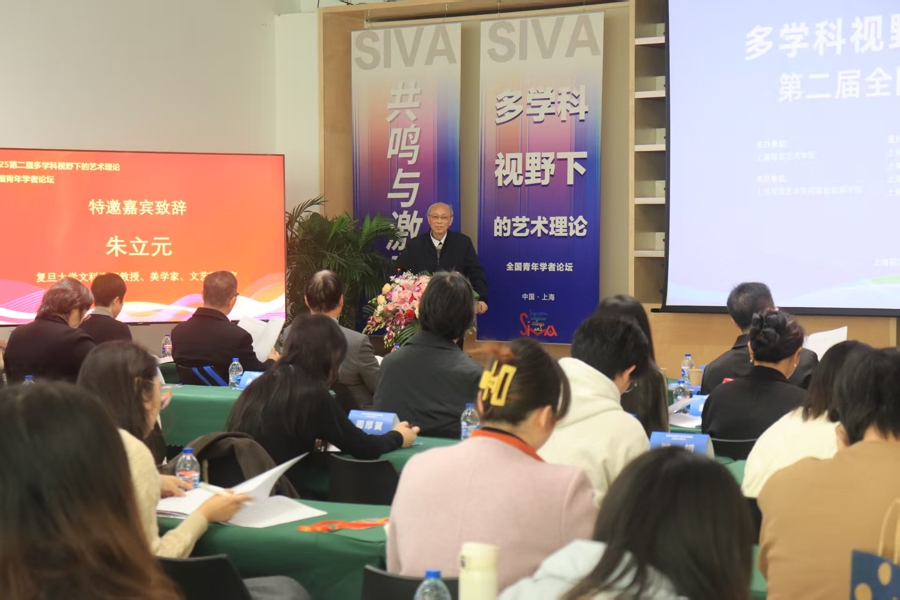 复旦大学文科资深教授、上海市哲学社会科学“学术贡献奖”获得者朱立元作为特邀嘉宾发表主旨演讲,他对青年学者寄予厚望:“大家在交流探讨中碰撞新思想、收获新创见、实现新突破,通过多学科视野与艺术理论学科的深度互动,推动理论研究与实践应用的双向繁荣。”
