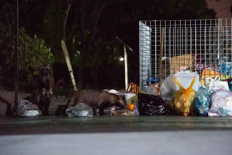 貉在夜色中翻找垃圾。 武亦乾摄